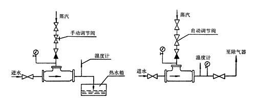 ,調(diào)節(jié)蒸汽側(cè)閥門(手動(dòng)或電動(dòng)調(diào)節(jié)閥),就可得到所需溫度的熱水。