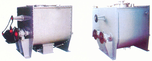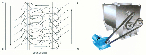性能特點一該機通過兩根等速反向旋轉(zhuǎn)軸上特殊布置的槳葉,使物料作徑向、環(huán)向、軸向三向運動,形成復合循環(huán),在極短的時間內(nèi)達到均勻混合。一可進行固(粉)—固(粉)(粉體粒度300—2000um)混合。一根據(jù)用戶要求,還可以另加噴液及夾套裝置,使之可作為固(粉)—液(含液量<15%的混合及干燥設備使用。