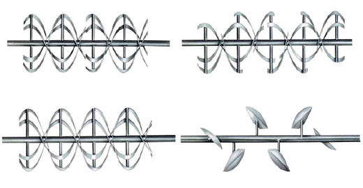 HTM型螺條式混合機主要有傳動部件、筒體、筒蓋、特殊布置的螺條主軸、出料閥等組成。該螺條式混合機由電機經(jīng)減速機驅(qū)動特殊布置的螺條主軸旋轉(zhuǎn),中心出料時外部的螺條將物料移到中心位置,內(nèi)部的螺條將物料推向端板,兩股物料作相互擴散、對流、剪切、錯位和輻射狀運動,從而使物料在極短的時間內(nèi)達到混合均勻的效果。根據(jù)物料特性可選用--連續(xù)式螺條、斷續(xù)式螺條和槳葉式螺條。三種螺條根據(jù)出料點不同可以排列成中心和端部卸料兩種形式。