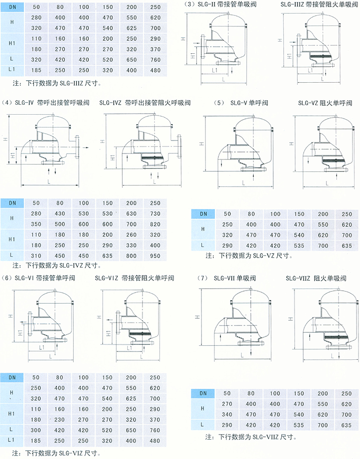 (1)SLG-I帶雙接呼吸閥 SLG-IZ帶雙接管阻火呼吸閥 (2)SLG-II帶吸入接管呼吸閥 SLG-IIZ帶吸入接管阻火呼吸閥