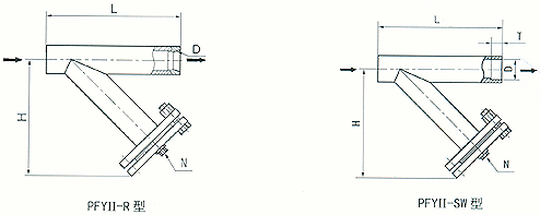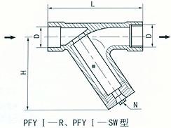 (1)Y型鑄造螺紋連接式(PFYI-R型)、承插焊接式(PFYI-SW型)(DNl5—50,PN≤5.0Mpa)