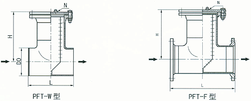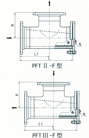 (2)T型法蘭連接直通式過濾器(PFT-F型)(DN50~400,PN≤5.OMPa)